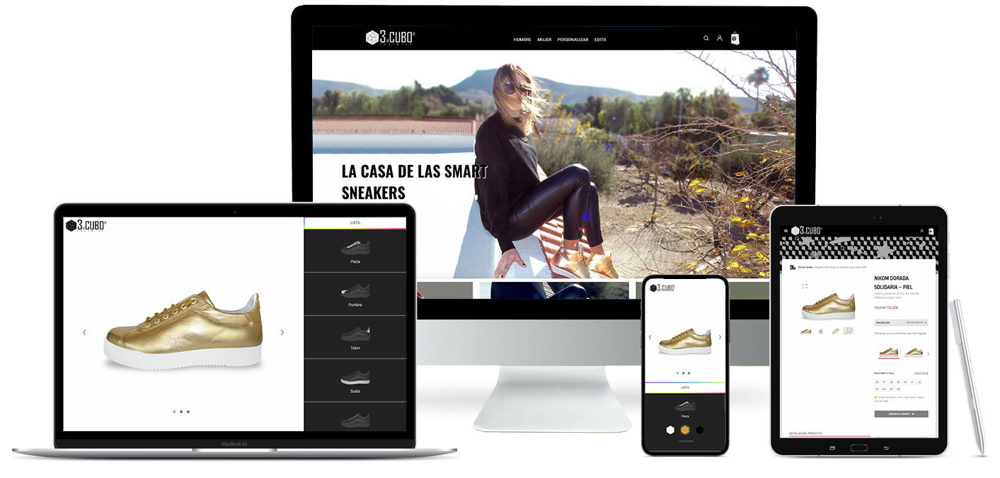 especializada en sneakers, realizada con Woocommerce, totalmente personalizada y adaptada para la configuración de un personalizador virtual propio que permite cambiar el color de cualquier parte de sus zapatillas.